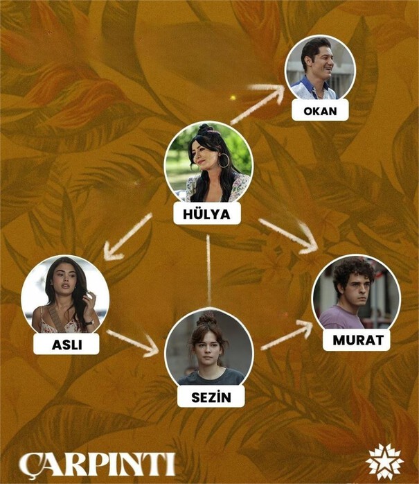 - Сезин и Мурат (Хелин Эльверен и Мехмет Фатих Обуз) — близнецы (двойняшки), сестра и брат Аслы, и дети Хюльи. Сезин — добрая, спокойная и рассудительная девушка. Мурат — болтун, который свой страх и собственные переживания пытается скрыть за шутками, порой неуместными. Они всегда и во всем поддерживают старшую сестру. Долгое время Хюлье удавалось контролировать жизнь детей, но по мере нарастания ее конфликтов с Аслы пропасть между ней и близнецами только увеличивается.