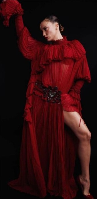 Серенай Сарыкая, которая в ближайшие месяцы не планирует сниматься в новых кинопроектах, тоже стала почетной гостьей мероприятия. Она появилась на красной дорожке в ярко-красном платье бренда Blumarine. Безусловно, цвет платья очень яркий и запоминающийся, но даже не все поклонники самой актрисы остались довольны ее нарядом. Наличие большого количества воланов и драпировки лишило Серенай талии, а само платье кажется похожим просто на кусок скомканной ткани. На самой красной дорожке Сарыкая появилась еще и в шубе такого же цвета. Это тот редкий случай, когда монохромный образ получился ярким, но не привлекательным. Однако преданные поклонники звезды турдизи уверены, что такое платье правильно преподнести могла только эта актриса, и фасон вовсе не портит ее фигуру благодаря массивному поясу в форме цветка. И да, именно Серенай Сарыкая стала «Девушкой года» по версии ELLE AWARDS 2026.