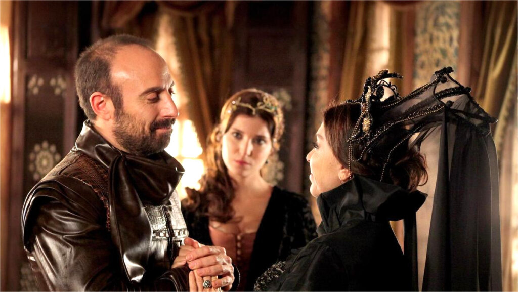 Все мы знаем, что в «Великолепном веке» именно Хафса-султан была человеком, активно выступавшим против брака Хатидже и Ибрагима. Валиде, узнав о чувствах дочери к хранителю покоев, пришла в ярость. Некоторое время она пыталась заставить Хатидже забыть об Ибрагиме, затем стала называть ее бессовестной, а после и сына пыталась убедить в том, что этот союз невозможен и ничем хорошим он не закончится. Правда, Сулейман не посчитал нужным прислушиваться к словам матери. В тот момент он сам был безумно влюблен в Хюррем и верил, что именно любовь сумеет преодолеть все преграды на своем пути.