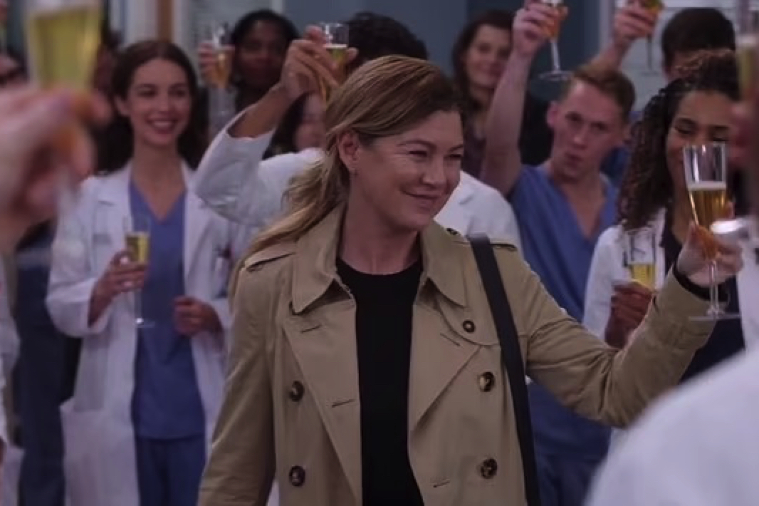 В превью показано также, как Мередит идет по Мемориальной больнице «Грей Слоан», радостно говоря: «Мой последний день!» И ее коллеги устраивают ей прощальную вечеринку-сюрприз.