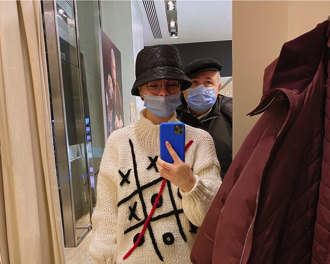 31-летняя женщина держит Вагана на руках. Молодая мама нарядилась в черно-белый клетчатый жакет и черный берет с винтажной брошью. Вагана одели в вязаный костюмчик и шапочку телесного цвета. «Какие планы на воскресенье? Мы в гости», — объявила Брухунова.