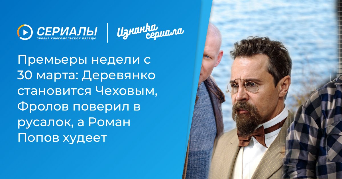 Премьеры недели с 30 марта: Деревянко становится Чеховым, Фролов поверил в русалок, а Роман Попов худеет