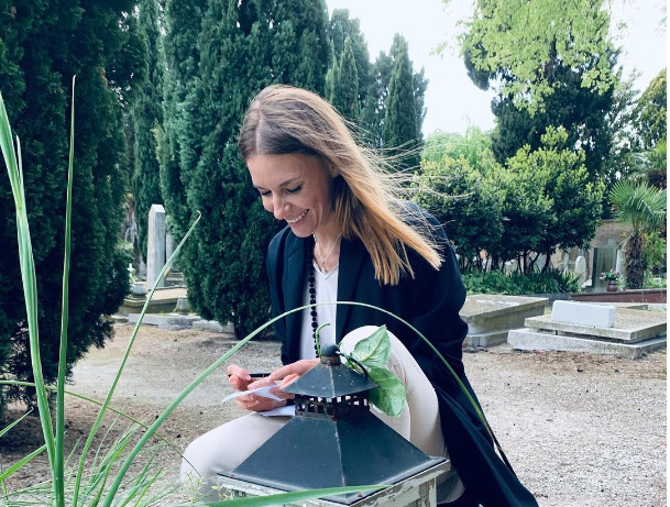 Знаменитость разместила в блоге серию фотографий со знаменитого погоста на острове Сан-Микеле. Толкалина принесла на могилу поэта букет желтых роз и письмо.