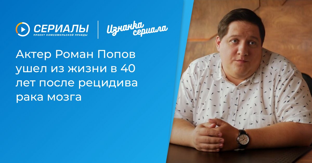 В возрасте 40 лет скончался актер Роман Попов, наиболее известный широкой аудитории по роли следователя Мухича из популярного сериала «Полицейский с Рублевки». Причиной смерти стал рецидив онкологического заболевания головного мозга, с которым артист боролся на протяжении нескольких лет.