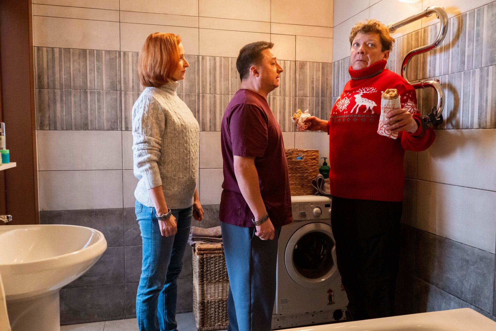 - Екатерине Стуловой и Максиму Лагашкину несложно сыграть семейную пару: во-первых, они ранее играли супругов в сериале «Букины», а во-вторых, они и в реальной жизни женаты.