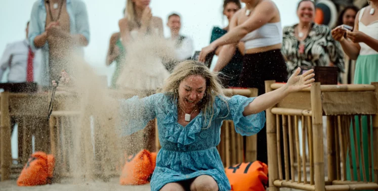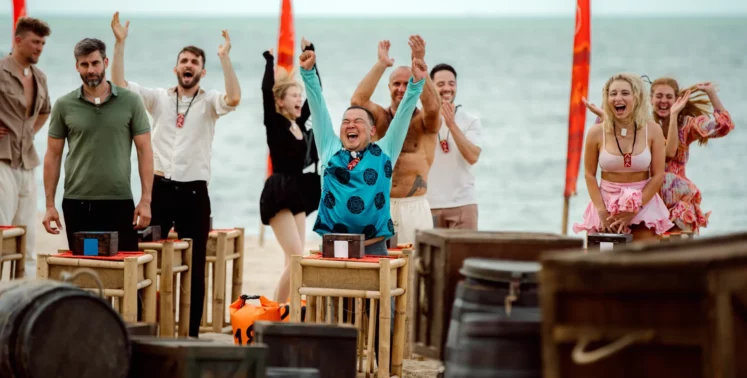 - Локации выстроены из местных материалов: бамбука, листьев пальм, кокоса и других. На одном из этапов потребовалось полторы тонны глины, для другого — пятитонный контейнер.