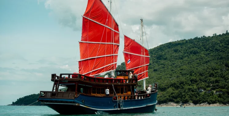 - Из транспорта — водные мотоциклы, вертолет, лодки. Одно судно «переплыло» из третьего сезона сериала «Белый лотос» — с красными парусами.