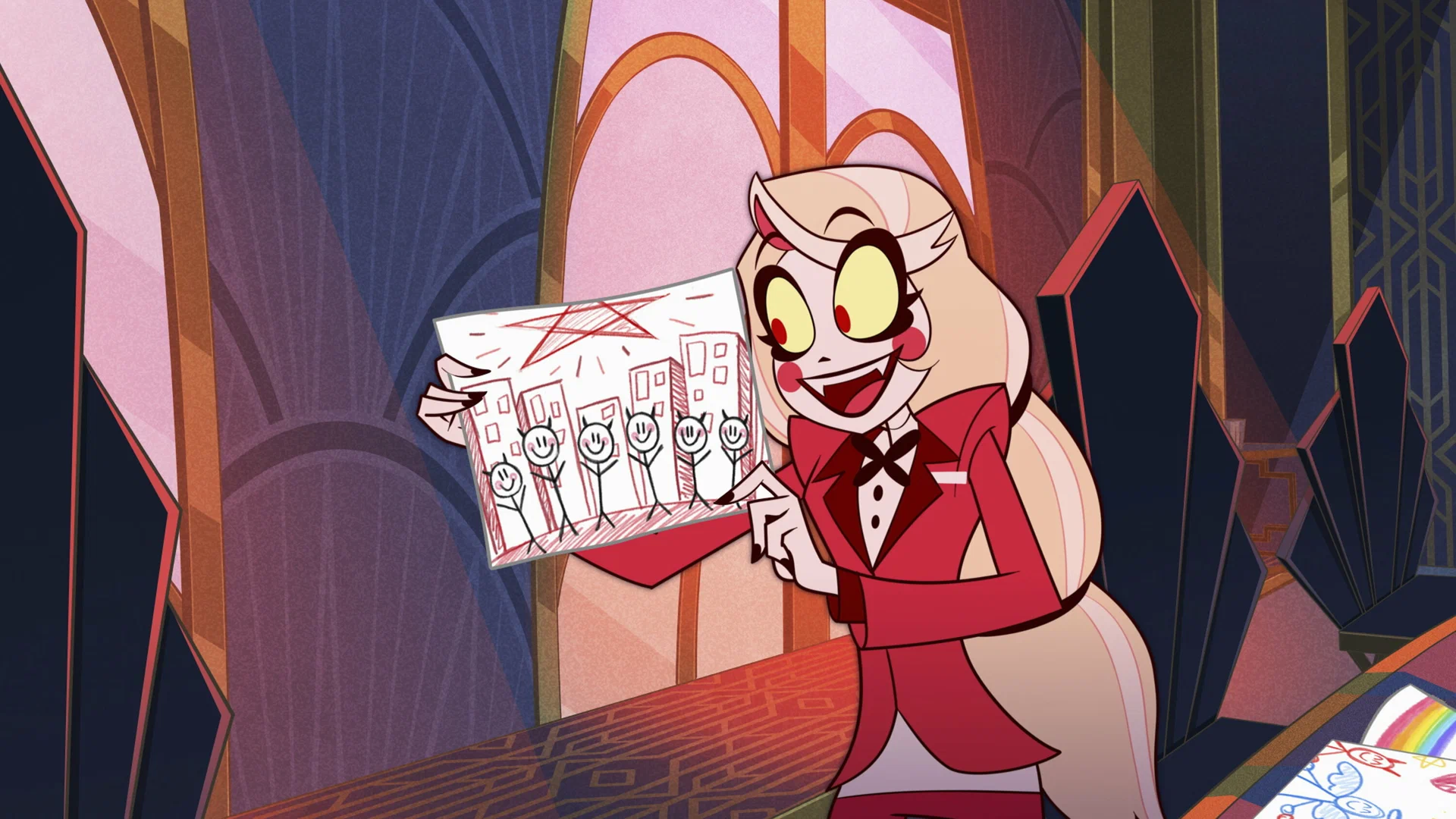 - Параллельно с сериалом на официальном сайте «Отеля Хазбин» создаются спин-офф комиксы, которые рассказывают истории некоторых персонажей из мультфильма.