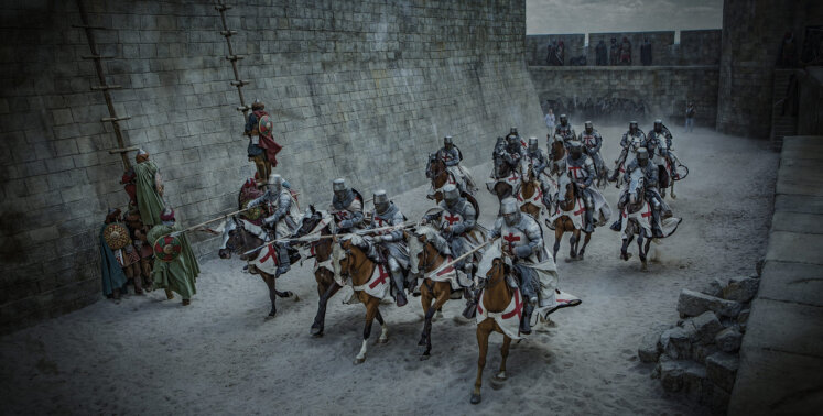 Мне нравятся отдельные эпизоды из жизни тамплиеров, когда они были реальной силой в Иерусалиме около двухсот лет. И конечно, всё это время они вели войны. Как и римляне, они заключали договоры, они присутствовали в правительстве. Но нельзя одновременно быть солдатом и монахом. Но они были, и они жили этим. Вот о чём мы думаем, когда играем эти роли…