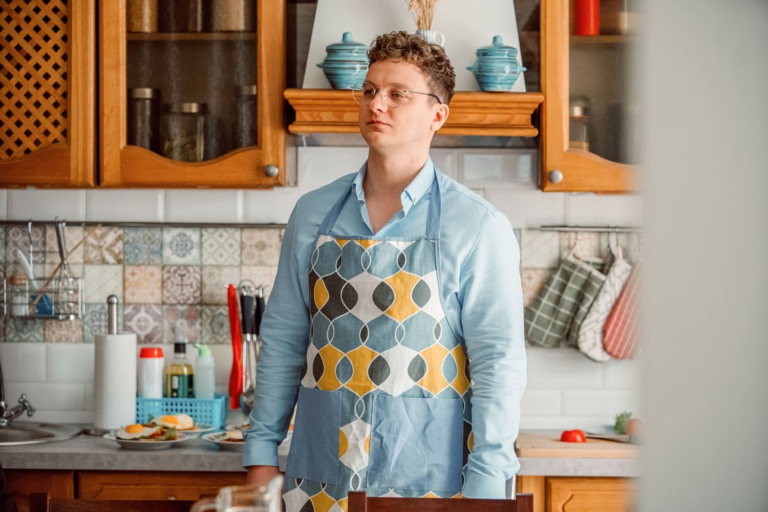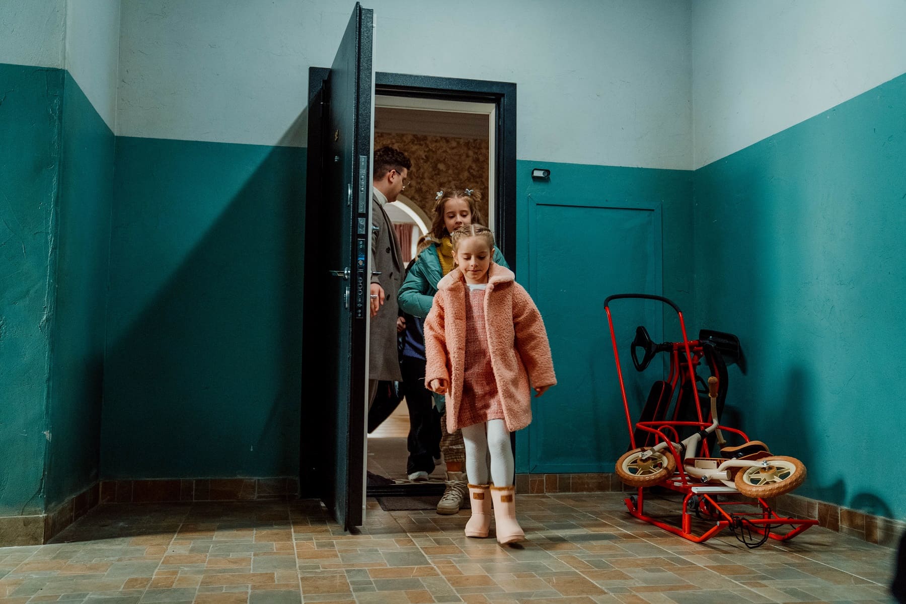 - Квартиру, в которой герой Филиппа Бледного Веник живёт со своими четырьмя дочками, построили за полтора месяца. Декорации занимают 130 квадратных метров и вмещают в себя комнаты девочек, Веника, гостиную, ванную комнату и прихожую, в которой можно увидеть поделки и рисунки актрис сериала. Также в декорациях поместились лифт, лестничная клетка и лестница с тремя пролетами.