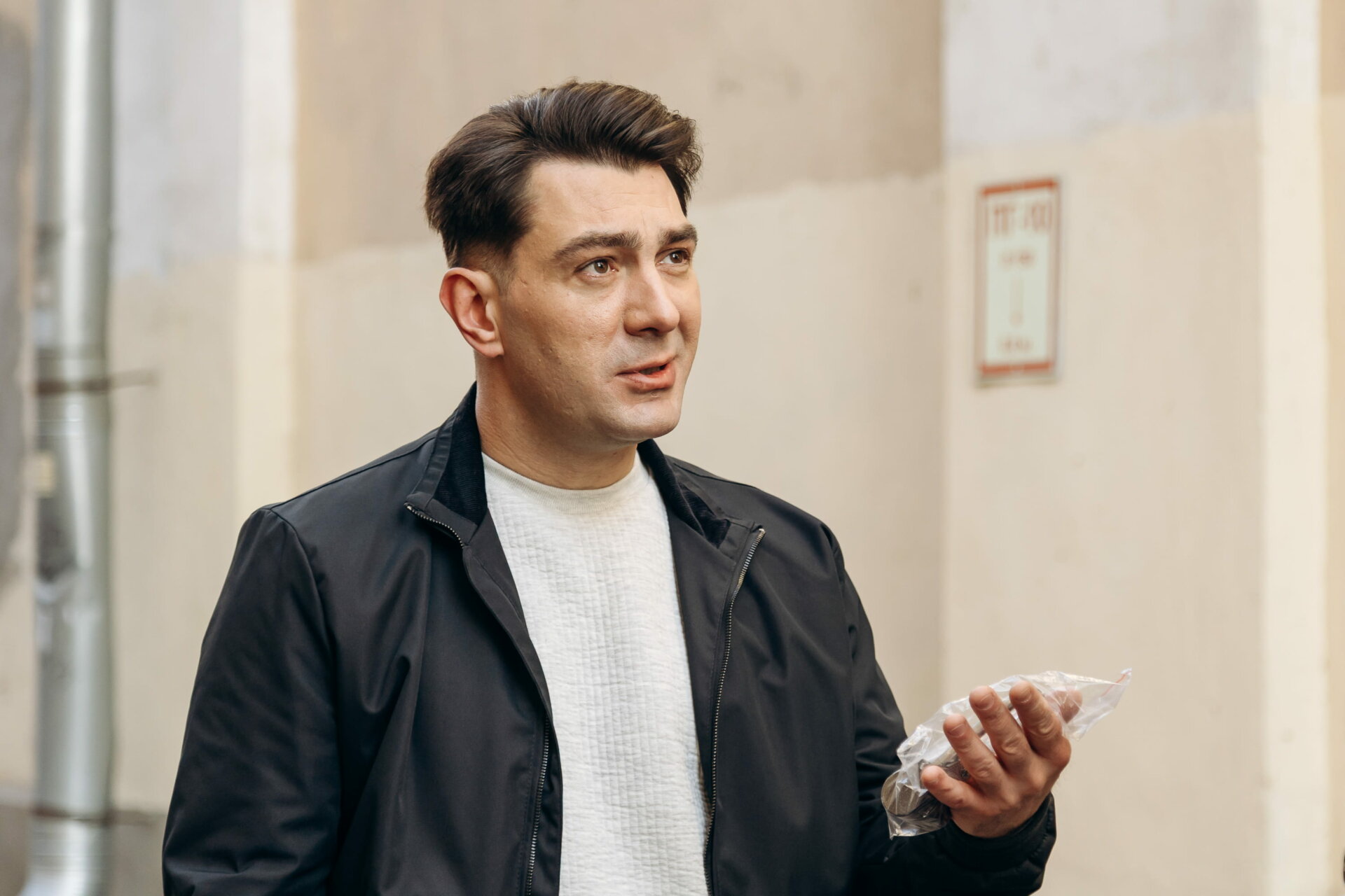 ««Первый отдел» – это мой любимый проект! Уже пять сезонов над ним работает чудесная команда настоящих профессионалов. Здесь на площадке я работаю с актёром, которого просто обожаю, – это Иван Сергеевич Колесников, мой партнёр по сериалу. Можно сказать, что мы с ним уже не просто играем роли Брагина и Шибанова, а живём этими персонажами. Мы произносим «буквы», которые нам дают, но при этом не забываем вместе веселиться и радоваться всему. Благодаря взаимной поддержке и желанию творить мы продолжаем создавать сериал, который нравится зрителям уже не первый сезон. Надеюсь, что это только начало!», — актер Сергей Жарков.