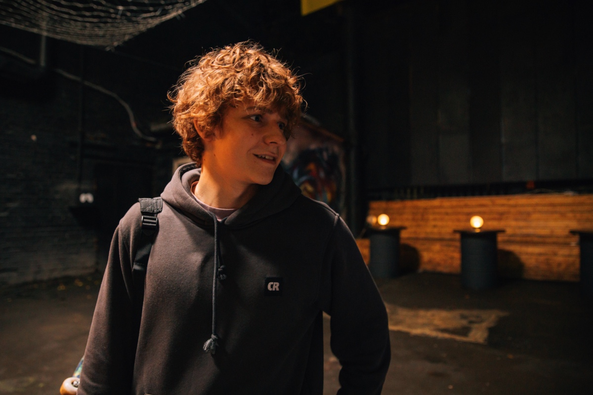 «Наталия Мещанинова увидела мои пробы для другого проекта и позвала на кастинг. Учитывая, что у меня не было актерского опыта, я изначально ничего не ожидал от проб. И только после того, как позвали повторно, я стал рисовать у себя в голове, каким должен быть Гоша, начал понимать героя, вживаться в роль и по-настоящему полюбил этот образ. Как и Гоша я в свое время проходил пубертатный период, который в чем-то схож с тем, что был у героя. Я так же не понимал, что будет дальше, были проблемы со школой и бесконечные поиски себя. Специально к съемкам я начал смотреть русских стендаперов – до этого смотрел выступления Луи Си Кея, Джимми Карра и других зарубежных комиков, и даже не знал, что у нас есть не менее талантливые, начал смотреть их, чтобы сформировать свой стиль подачи, и понять, как он будет меняться по мере развития сюжета, а также записался на уроки скейтбординга – такт как мой герой гоняет на доске. Я думаю, сериал может зацепить своей искренностью, тем, как подросток ищет себя в стендапе, превращая свои проблемы в шутки» — Макар Хлебников, исполнитель главной роли