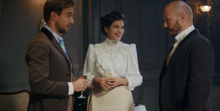 «Моя героиня – суфражистка, журналистка и одна из лидеров газеты «Женская доля» – газеты феминистского склада, борющейся за права женщин и равноправие полов. А так Ольга – прекрасная хулиганка, и они с Роскевичем такие Мистер и Миссис Смит. И чем больше вокруг разбитой посуды и гитар, каких-то криков и всего прочего, тем больше между ними искры и драйва».
