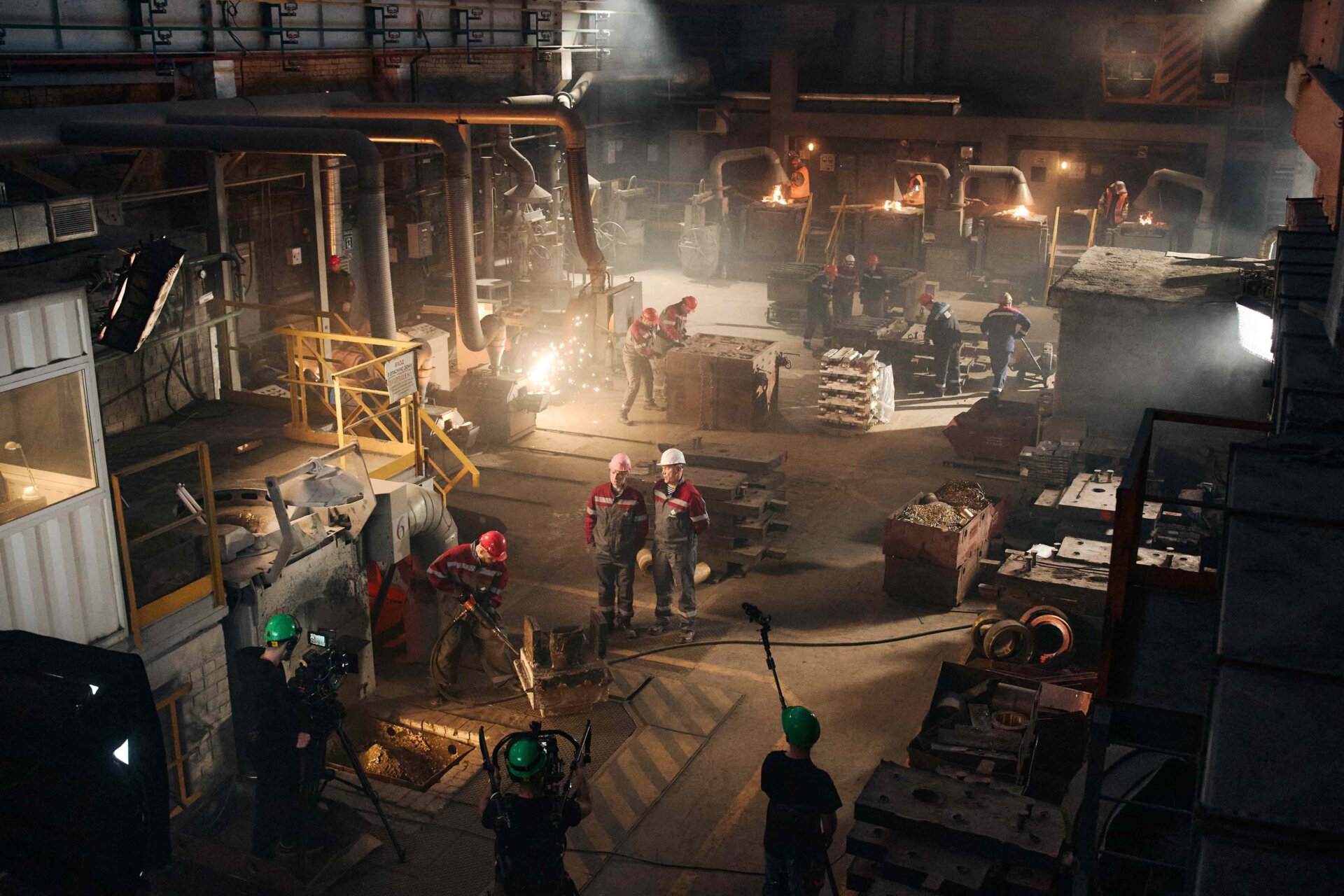 «Мы снимаем на гигантском действующем металлургическом производстве, и это большой производственный вызов. Никто не будет останавливать работу завода ради нас, поэтому приходится решать массу вопросов с безопасностью, шумом, экстремальными температурами и логистикой. Уверен, все сложности мы преодолеем…», — режиссер Василий Свиридов.