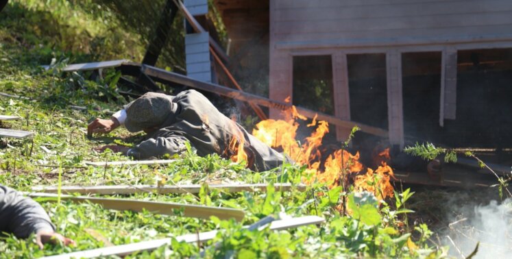 - Авторы проекта отказались от идеи «компьютерного огня»: пожар одного из строений был настоящим. Съемочная группа поджигала декорации и устраивала контролируемое воспламенение для достоверности.