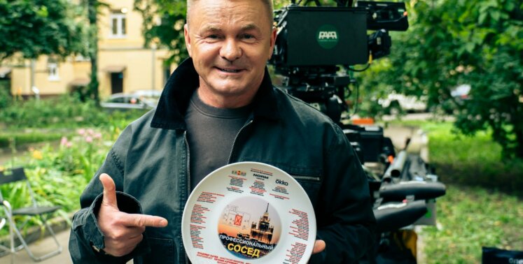 Мой герой Баев — это настоящий профессионал, который всеми изощрёнными способами старается выжить людей из квартиры. Играть такого персонажа интересно: он остроумный, хитрый, действует неожиданно. Съёмки «Профессионального соседа» только начались, и я рад быть частью этой истории».