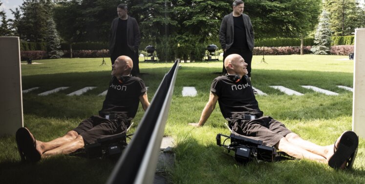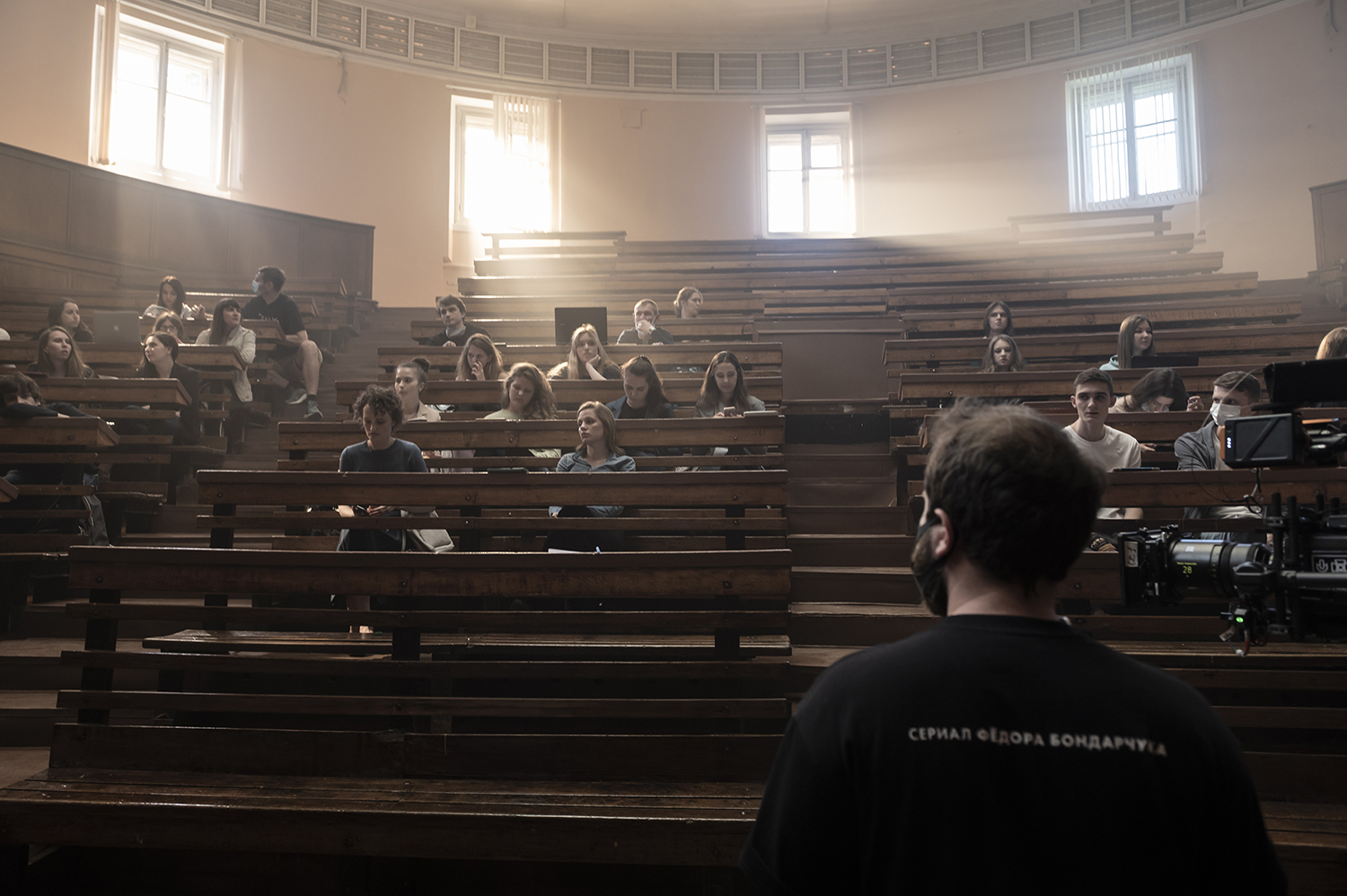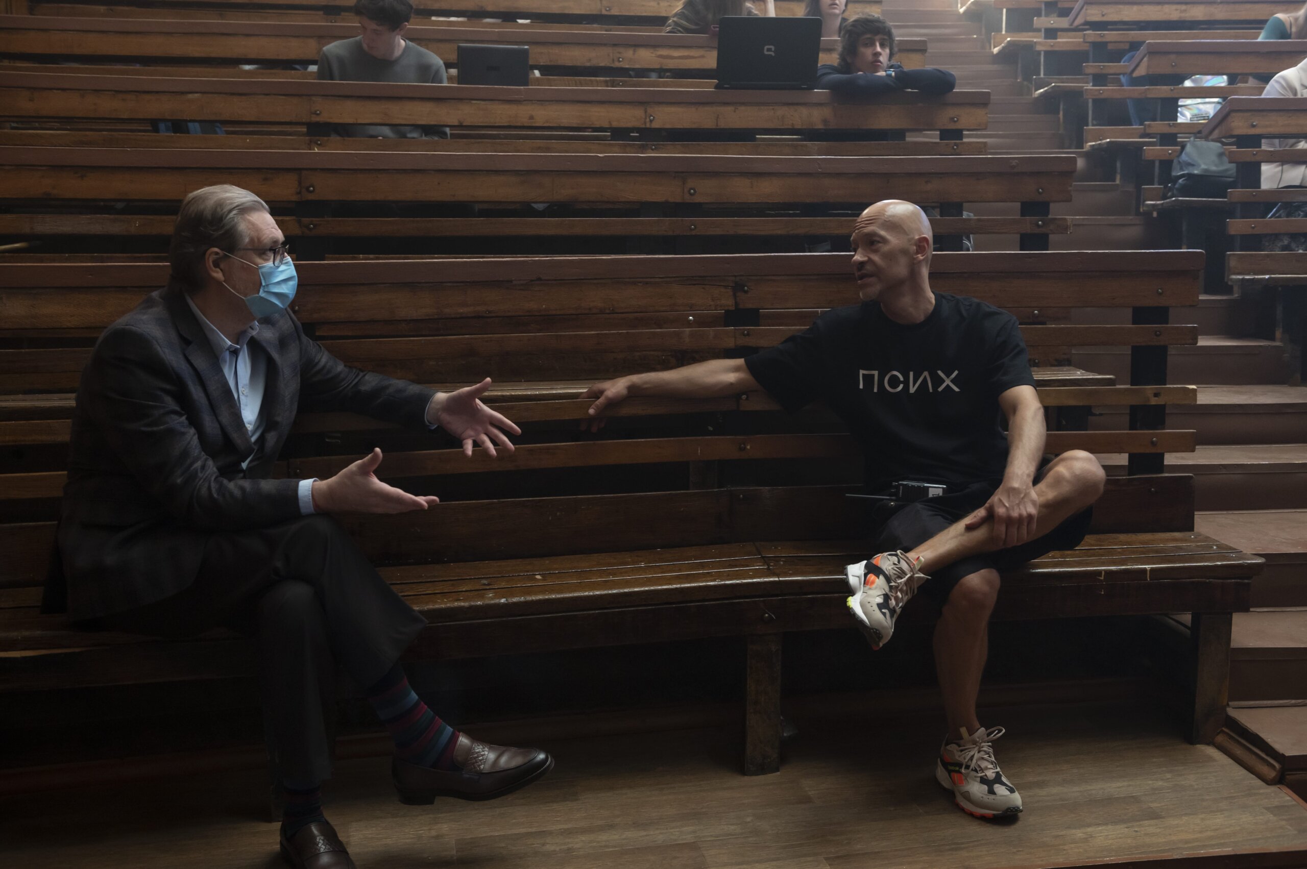 «Псих» — это настоящее путешествие по летней Москве. Вместе со съемочной группой мы исследовали «Зарядье», посещали Музей архитектуры на Воздвиженке, устраивали поисковые операции в Лыткарино, ютились в небольших квартирах, где, мне, после масштабного «Вторжения», было даже немного тесно. Специально для нас приостановили снос полуразрушенного здания на Волоколамском шоссе, и мы стали последними, кто его увидел. А финальная, 55-я смена проекта прошла под Звенигородом, на огромном поле, с вертолетами, простором и настоящим размахом. Это было лето удивительных съемок и непрерывных вызовов». — Федор Бондарчук, режиссер