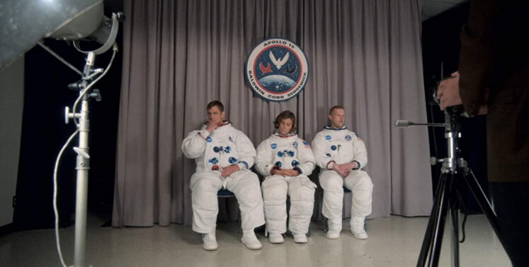 А вот «Аполлон 11» с шумом и треском прилуняется. Правда, Армстронг и Олдрин после жесткой посадки вынуждены привыкнуть к тишине. Аппаратура для связи с центром управления полетами выходит из строя, и, вспоминая все свои знания, а также родственников до седьмого колена, астронавты восстанавливают связь с Землей. И в конце концов возвращаются на Землю, где их ждет Болдуин.