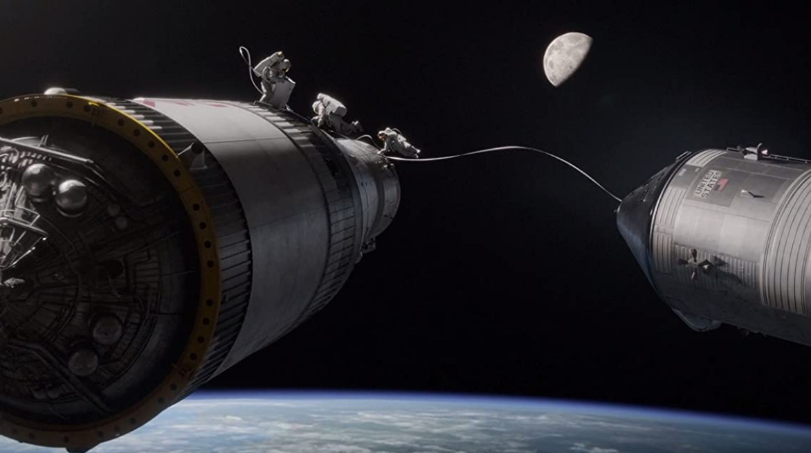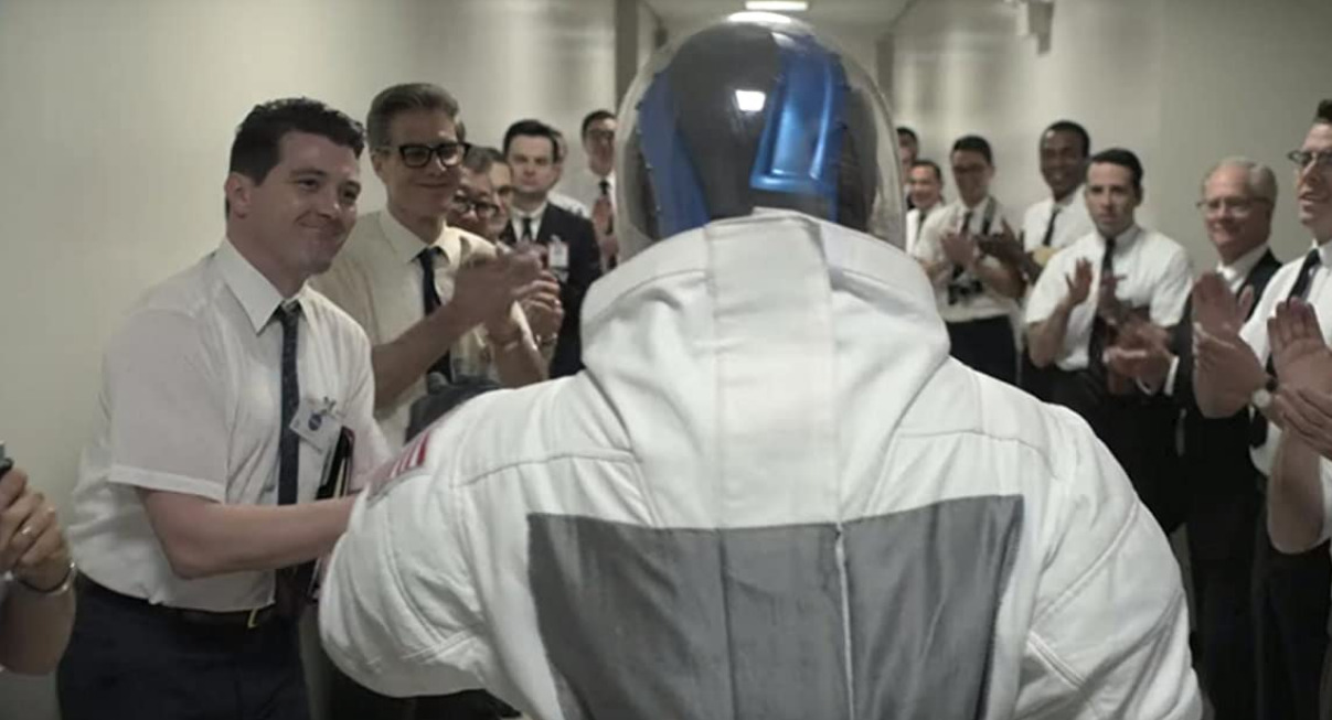 А вот «Аполлон 11» с шумом и треском прилуняется. Правда, Армстронг и Олдрин после жесткой посадки вынуждены привыкнуть к тишине. Аппаратура для связи с центром управления полетами выходит из строя, и, вспоминая все свои знания, а также родственников до седьмого колена, астронавты восстанавливают связь с Землей. И в конце концов возвращаются на Землю, где их ждет Болдуин.