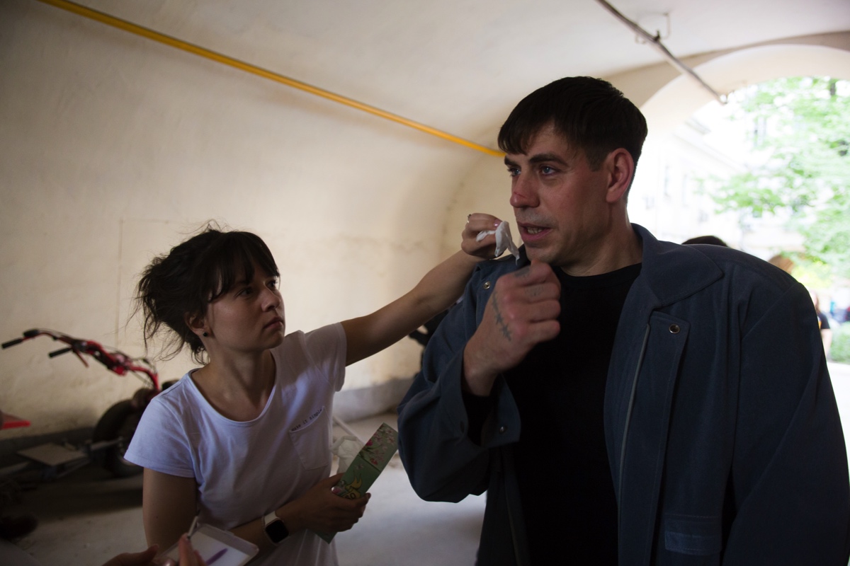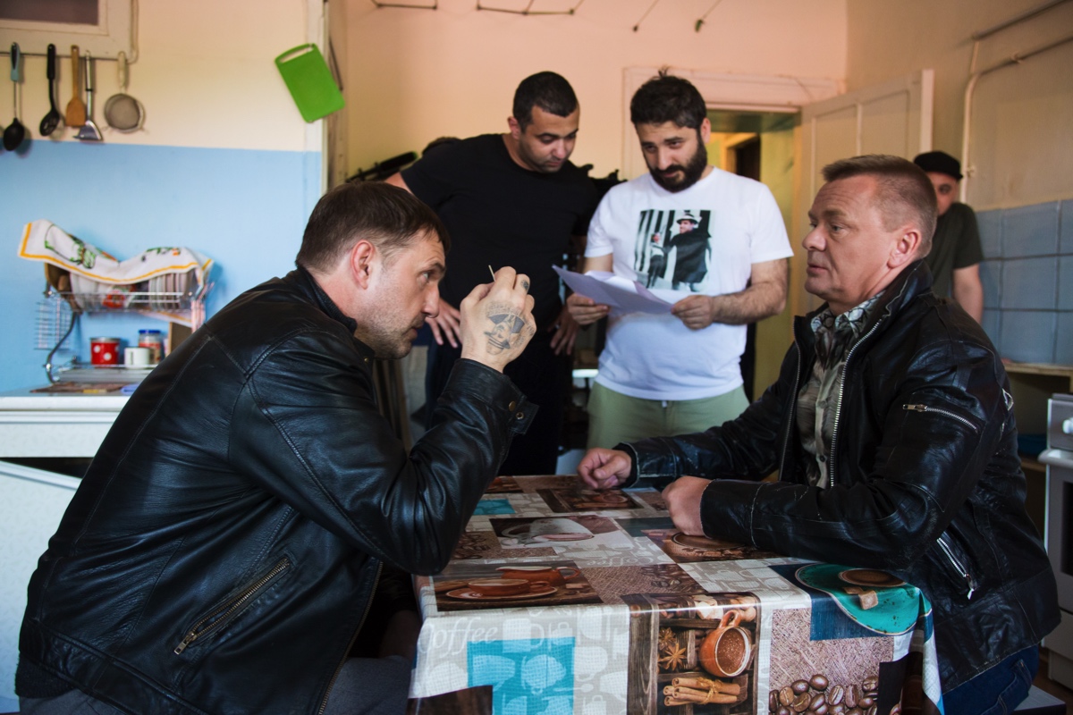 «Хотя наша история про уголовников, но не про тех, которых часто показывают в нашем кино. Это – добрая веселая и очень смешная история. Люблю работать с Сариком, а тут еще прекрасный актерский ансамбль подобрался, прям кайфую на площадке» — Владимир Сычев, актер