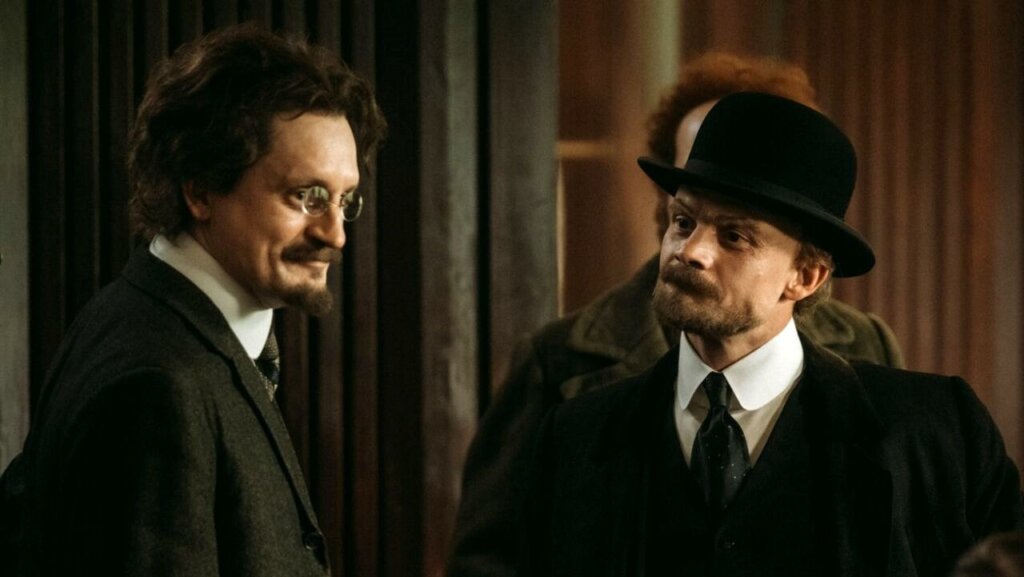 С Лениным вышло иначе. Худенький, юркий Евгений Ткачук играет бесявого карлика, уходит в карикатуру, в комический скетч (самое смешное, что актер уверяет, что стремился уйти от клише). Ильич лично чуть ли не с ножиком в руках пытается экспроприировать деньги у Парвуса — скачет, суетится. Никто из нас Ленина не видел — возможно, все так и было, но момента, когда в смешном уродце вскроются черные бездны, за четыре серии так и не случилось. Это тем более странно, если вспомнить, что еще в 2017-м вышла уникальная биография Владимира Ильича в исполнении Льва Данилкина «Пантократор солнечных пылинок», где сложнейшая сущность вождя была явлена во всей красе.