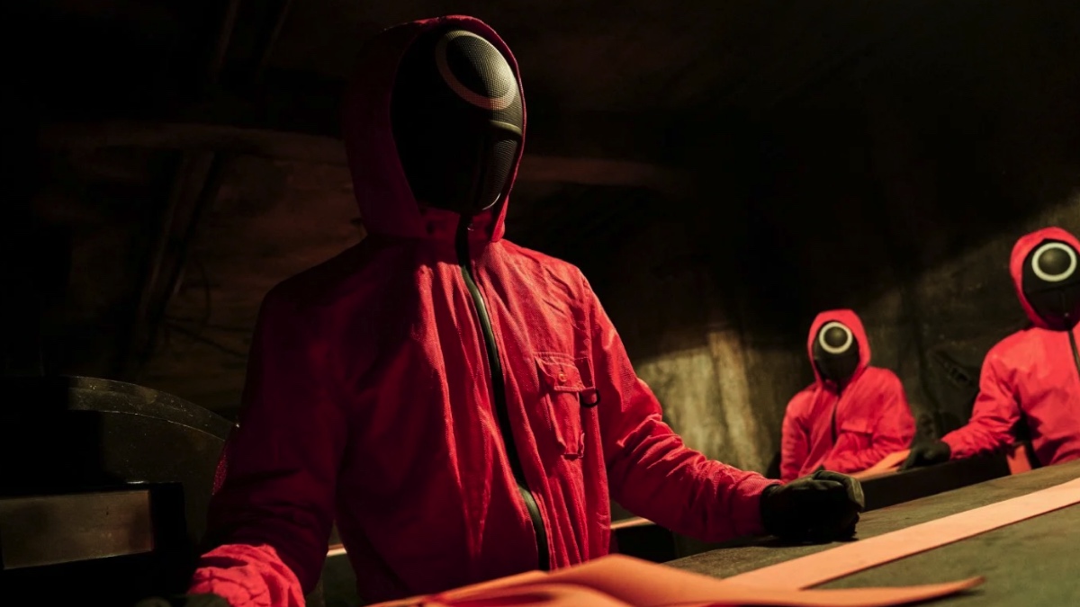 Говоря про игры, нельзя не упомянуть декорации «Игры в Кальмара». Тут уже сказалось качество и бюджеты Netflix. Огромные куклы, футбольные поля, детские площадки с горками, замки из гигантских лего, сам антураж тюрьмы игроков на острове, костюмы охранников, все настолько крутое и яркое, что диссонирует с происходящим на этих игрушечных гигантских сценах. Костюм главного злодея чем-то похож на Дарта Вейдера из звездных войн, чувствуется, откуда художник питал вдохновение.