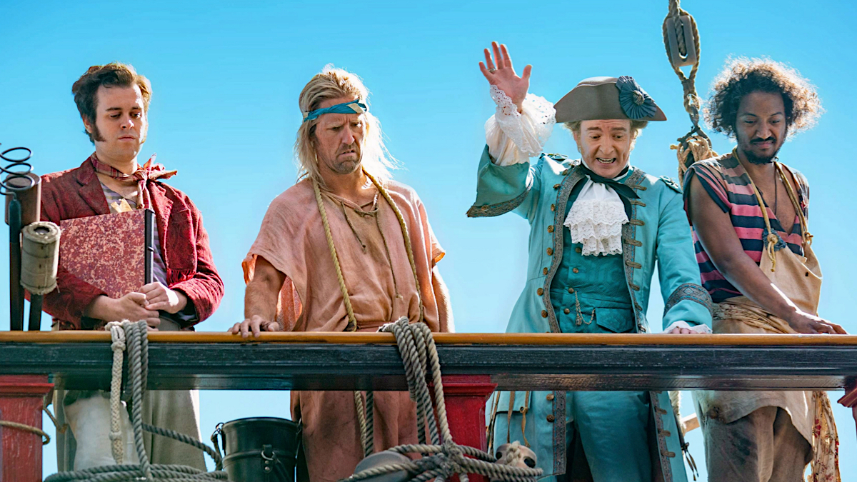 Неизвестно, сколь тщательно сценарий будет следовать за этим причудливым жизненным маршрутом, но без труда можно предположить, что сценариста и режиссера Тайку Вайтити («Реальные упыри» и «Тор: Рагнарёк») и его соавтора Дэвида Дженкинса («Земляне») точное воспроизведение летописей волнует меньше всего. Вместо этого сериал уделяет основное внимание проработке персонажей — в актёрском составе хватает звёздных имён, — и психологической подоплёке происходящего, как ни странно говорить об этом на фоне порой откровенного фарса, творящегося в кадре. Как обнаруживается, кризис среднего возраста переживает не только Боннет (пытающийся за счёт пиратской деятельности преодолеть психологические травмы, тянущиеся ещё из детства), но и куда более суровый корсар Чёрная Борода (сыгранный всё тем же Вайтити), у которого с джентльменом-недотёпой обнаруживается неожиданно много общего. Да и сами пираты, больше всего ценящие в Стиде умение читать сказки разными голосами, несмотря на буйный нрав, оказываются людьми достаточно широких взглядов, готовыми принять в свои ряды любого, кто больше всего ценит свободу.
