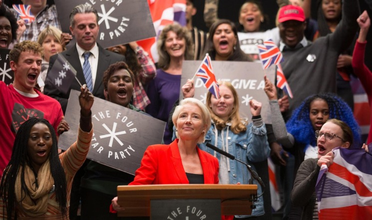 Справедливости ради, русские не единственные монстры в мировом миропорядке. Хороши все. Американцы бомбят Китай, Китай проглотил обиду, В Испании революция, во Франции «запретили» мигрантов, а в Англии к власти рвется героиня Эммы Томпсон, которая отчаянным популизмом завоевывает избирателей. В одной лучших романтических комедий «Реальная любовь» Эмма Томпсон сыграла сестру премьер-министра (Хью Грант). А теперь захватит это кресло сама. Но вместо хьюгрантовских танцев и любовных интрижек цель героини Эммы — тоталитарная Англия с концлагерями, неблагополучными «красными» зонами и жесткой пропускной системой («скоро в сортир будем ходить по пропускам»).