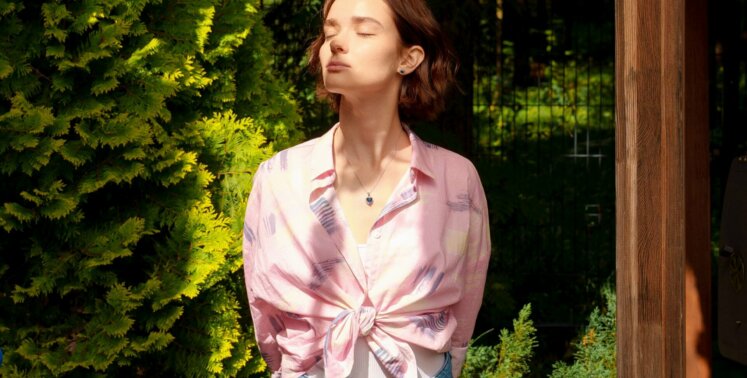 «Полина и ее семья – немного затворники. Муж работает удаленно, сама она занимается воспитанием дочки, и в целом они проводят все время дома, друг с другом в обнимку. Живут, творят, вроде все хорошо. Но после приезда родственников Кости выстроенная экосистема рушится, и все, что замалчивалось, выходит наружу. В конце истории Полина и Костя становятся другими людьми. Если говорить о втором плане моей героини, то, мне кажется, ей не хватало родительского тепла и внимания. Выйдя замуж и родив ребенка, она как бы отделяется от своего прошлого и страхов, которые ее сопровождали, пытаясь изо дня в день рисовать идеальную картинку собственной семьи. Надолго ли ее хватит?»
