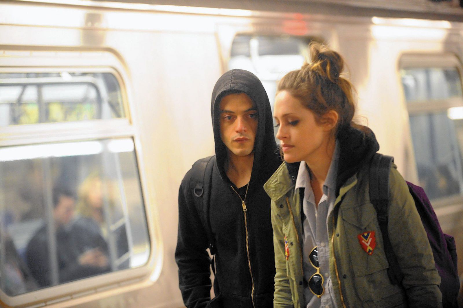 - Актерам было сказано не смотреть на сыгравшего мистера Робота Кристиана Слэйтера и не реагировать на его слова в мсценах, где Слэйтер и Малек находятся в одной комнате.