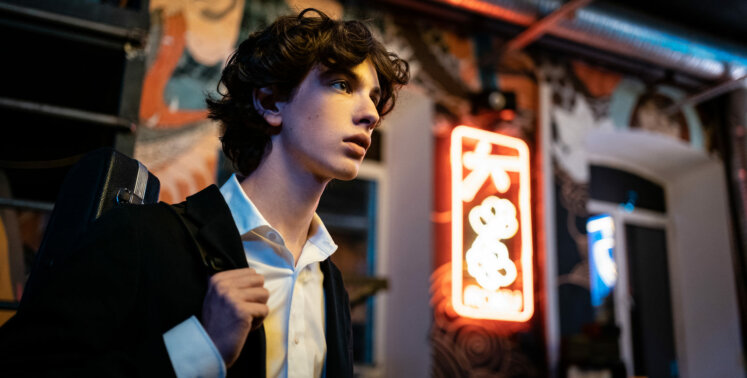 Четыре года я учился играть на скрипке в музыкальной школе, но на пятый не выдержал и разбил ее. Однако по сюжету мой герой Сеня — талантливый скрипач, поэтому я несколько месяцев занимался с профессиональным педагогом и успел заново полюбить этот инструмент. Скрипка стала моим главным партнером в сериале, через игру на ней мой персонаж выражает себя».