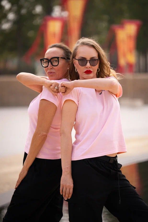 - Темно-розовая команда: певица Нюша и ее сестра Мария Шурочкина, российская синхронистка, дважды олимпийская чемпионка.