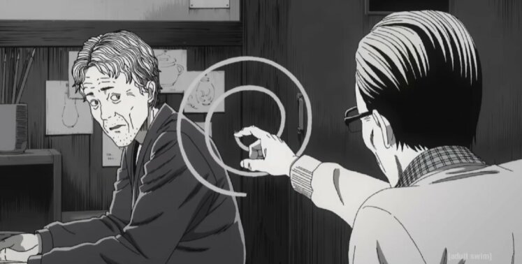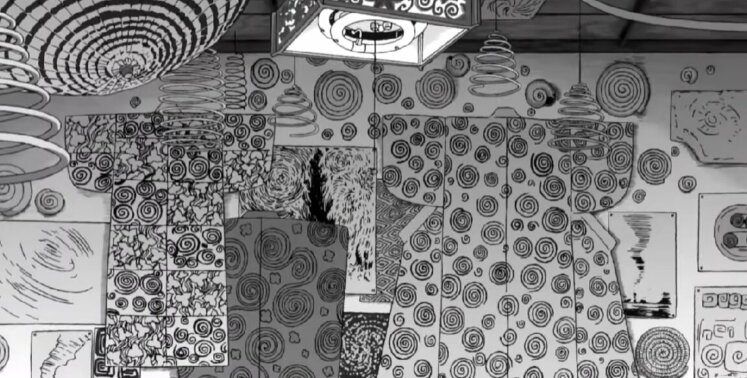- Сам Ито видел в спирали нечто таинственное и хотел показать узор не как что-то позитивное, а в другом, менее радужном свете. При этом он вдохновлялся спиралями повсюду: еда в виде спирали, спиральные узоры, которые сам прорисовывал, разводил улиток.
