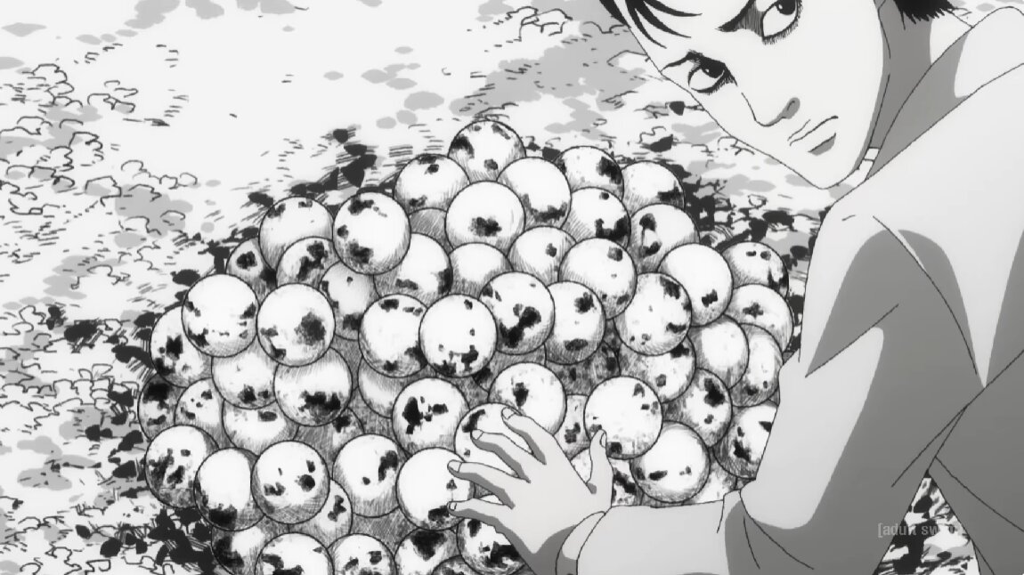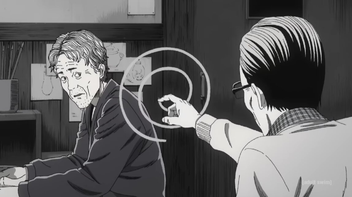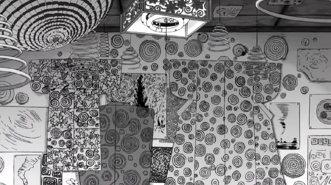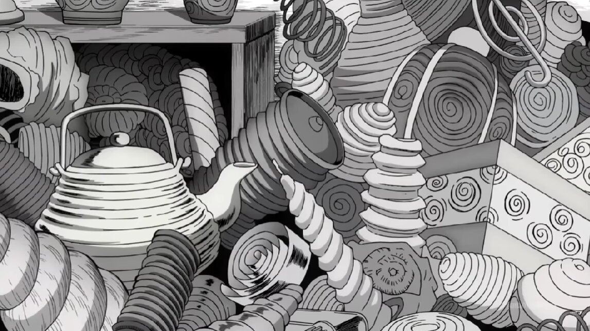 - Сам Ито видел в спирали нечто таинственное и хотел показать узор не как что-то позитивное, а в другом, менее радужном свете. При этом он вдохновлялся спиралями повсюду: еда в виде спирали, спиральные узоры, которые сам прорисовывал, разводил улиток.