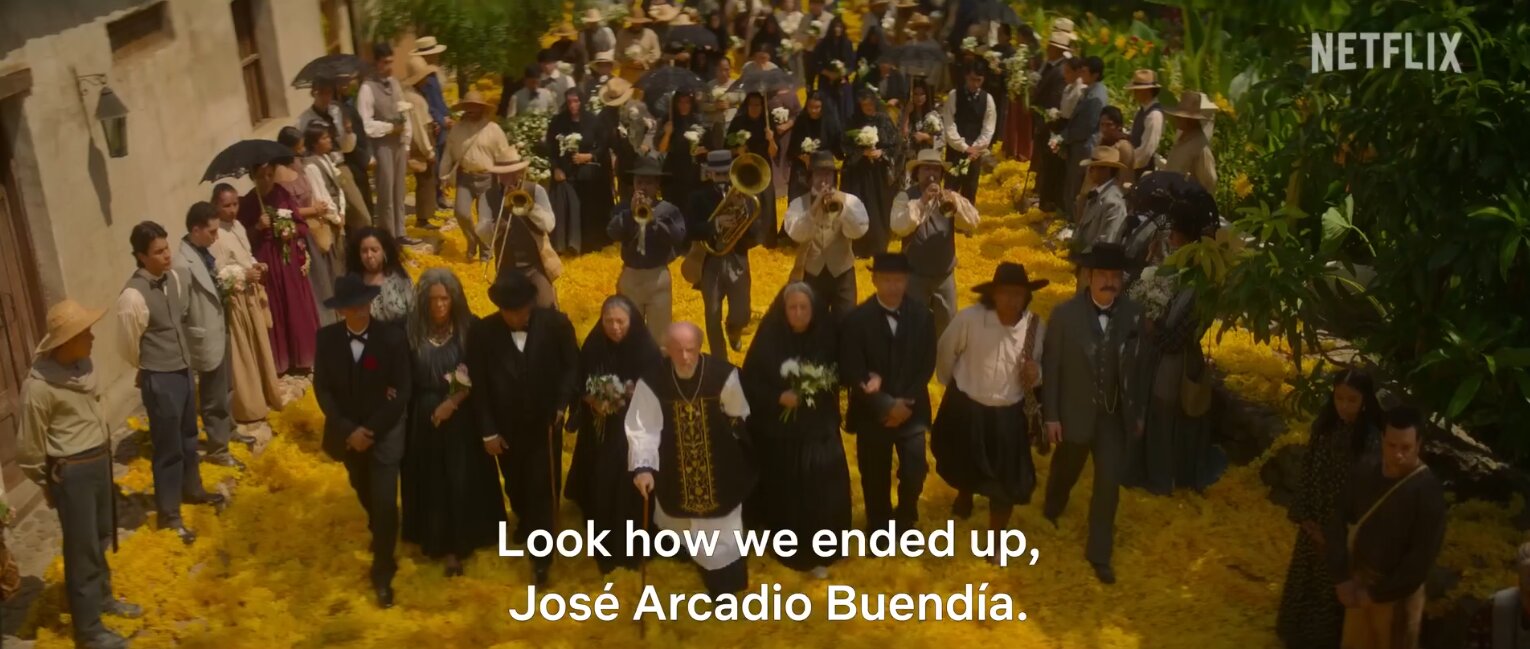 - При жизни Маркес поставил практически невыполнимые условия, которые обязательно должны быть соблюдены: обязательно на испанском языке, чтобы сохранить глубину эмоций, детальный рассказ каждого момента из романа и съемки «каждого года» по две минуты в год. Netflix обязался выполнить все, кроме двух минут в год.