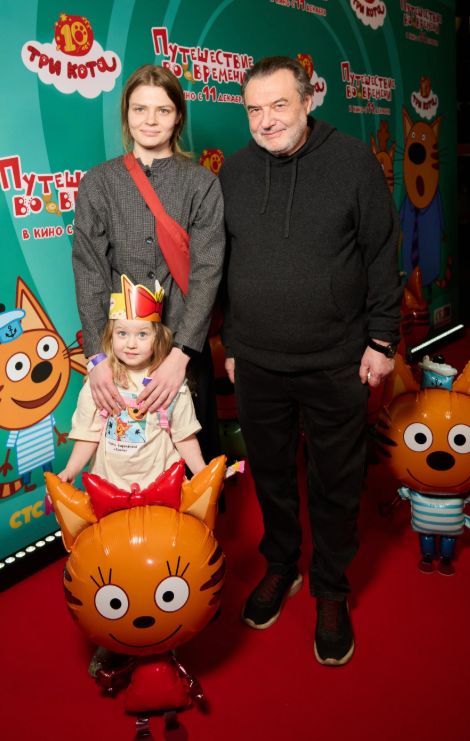 Имя Алексея Учителя вновь оказалось на повестке дня из-за редкого выхода режиссера в свет. На этот раз он появился на специальной премьере анимационного выпуска «Три кота: Путешествие во времени» вместе со своей молодой избранницей и их совместной дочерью.