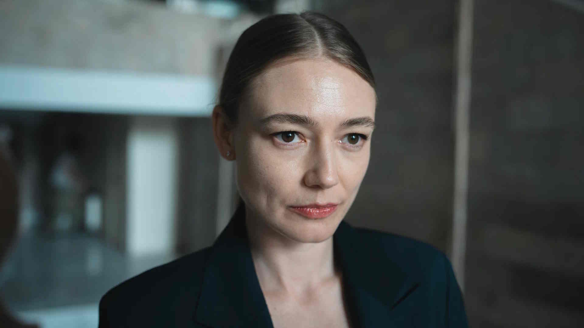 Актриса пришла на показ в коричневом брючном костюме, с макияжем, акцентирующем губы, и небрежным пучком на голове. С прессой актриса не общалась, после фотосессии удалилась в зал.