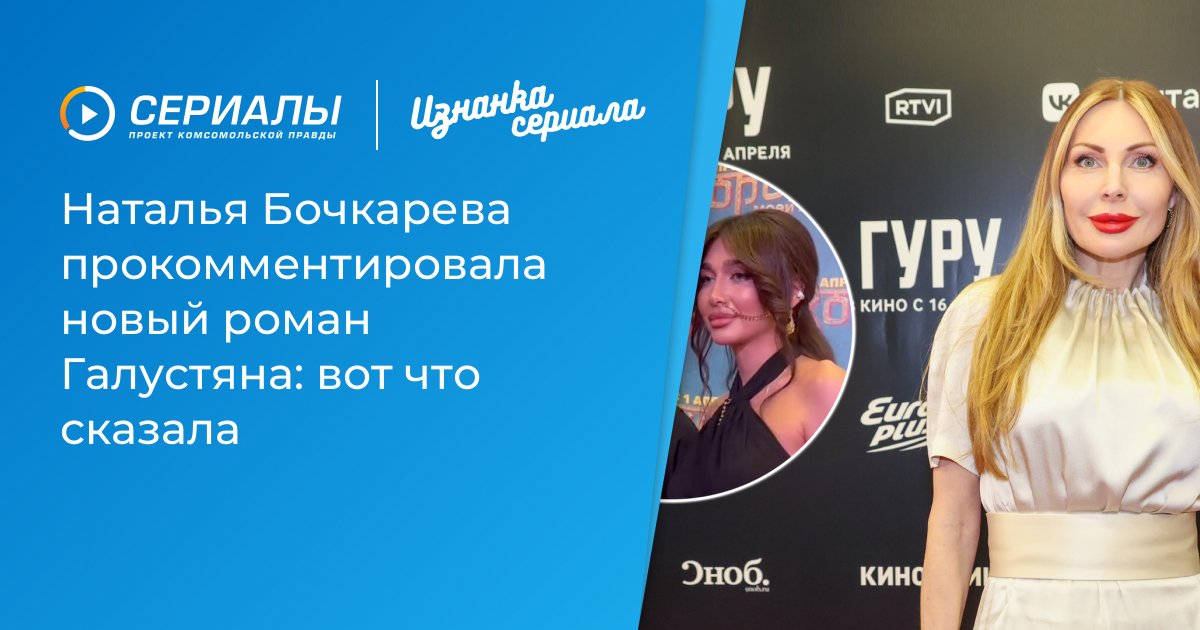 Наталья Бочкарева высказалась о новом романе артиста. Вместе они снялись в сериале «Счастливы вместе» — Наталья сыграла роль Даши Букиной, а Галустян выступил в камео. «Он харизматичный, обаятельный, талантливый. Он прекрасный человек, и я искренне желаю, чтобы он был счастлив», — рассказала Бочкарева.