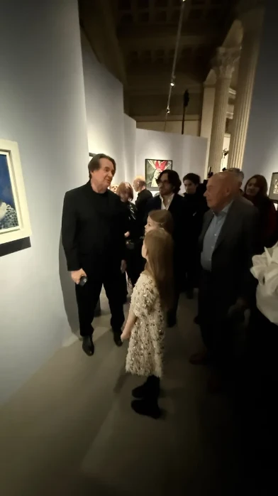 Константин Эрнст вывел в свет подросших дочерей. Пока генеральный директор Первого канала общался с другими гостями выставки, его наследницы не только мило беседовали с мамой, но и внимательно изучали картины, представленные в музее.