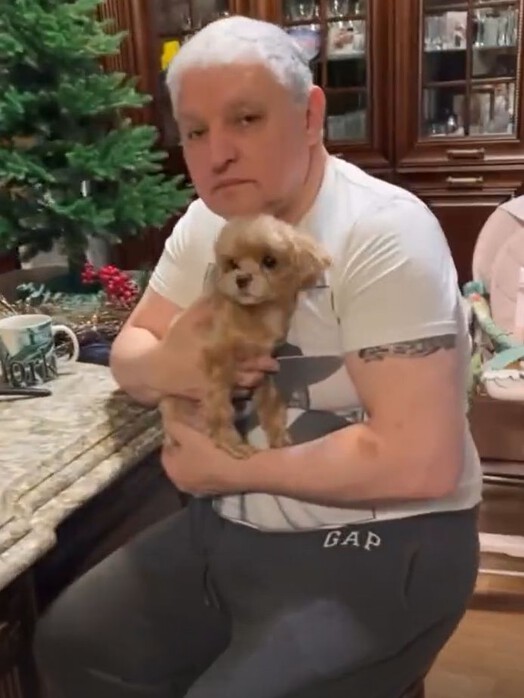 Жужу держал бывший муж Игорь Бухаров, одетый в домашние трико и футболку. Телеведущая поспешила отвести камеру. «Ой, Игоря не снимать, он выглядит не очень», — высказалась Гузеева в адрес 66-летнего ресторатора.