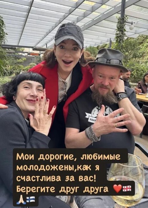 «Мои дорогие, любимые молодожены, как я счастлива за вас! Берегите друг друга», — обратилась она 54-летним артистам.