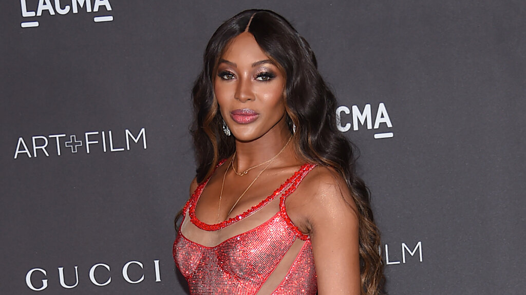 Однако на этот раз все внимание общественности было нацелено на супермодель Наоми Кэмпбелл. Эффектная чернокожая брюнетка появилась в откровенном наряде, которое подчеркнуло ее шикарную фигуру.
