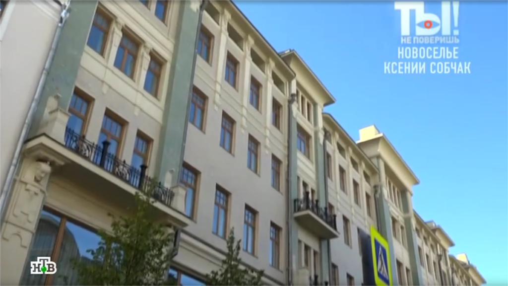 Ксения Собчак скупила целый этаж в доме 1903 года постройки. Особняк с видом на Кремль в народе прозвали «египетским». Фасад украшен барельефами голов фараонов, скульптурой бога Ра и решетками в виде пальмовых листьев.