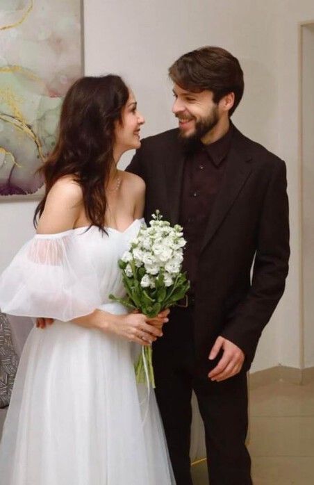 Марк Дорбский для свадебной церемонии выбрал монохромный образ: темно-коричневый костюм с рубашкой в тон. Поклонники актрисы буквально засыпали ее поздравлениями и отметили, насколько красиво и гармонично они с Марком смотрятся вместе.