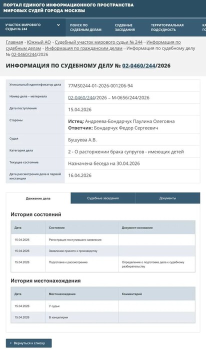 «Спустя год (а неофициально, конечно, еще больше) развод Федора Бондарчука и Паулины Андреевой перешел в правовую плоскость. На 30 апреля назначено заседание в мировом суде. Девять лет красивой истории с достойным уважения финалом», — написала Ксения Собчак.