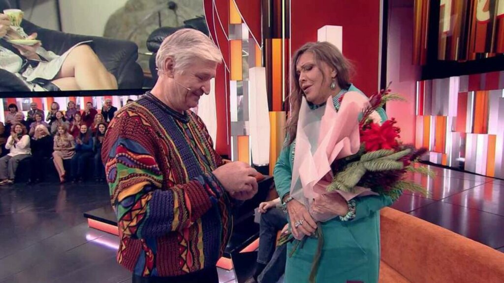 Миллионер Андрей Тришин решил вернуть звезду кино Елену Проклову. Он появился в студии с большим букетом цветов и кольцом, которое вручил любимой женщине. «Андрюха? Что? Нет… Ну надевай уже!» — сказала смущенная Проклова в эфире шоу «Пусть говорят».