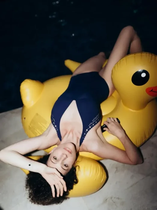 Ксения Раппопорт разместила смелые фотографии. Актриса позирует у бассейна в лаконичном темно-синем слитном купальнике с глубоким декольте.