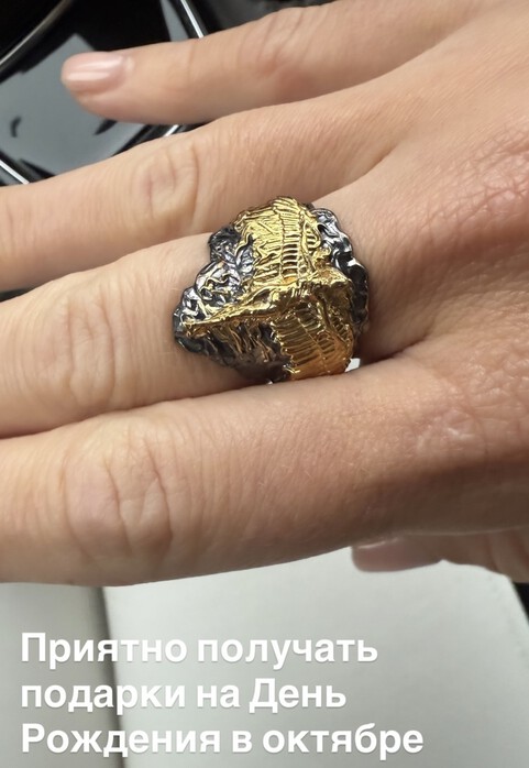 Диброва похвасталась массивным кольцом, изготовленным из серебра и желтого золота. Судя по всему, сама Полина осталась очень довольна таким подарком.