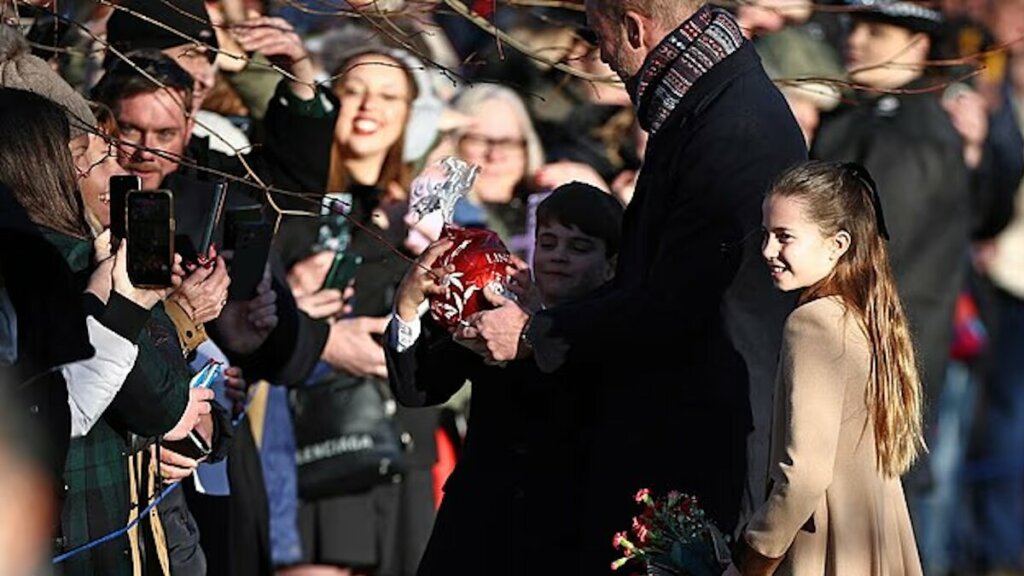 Кейт Миддлтон с мужем принцем Уильямом и детьми присоединились к Рождественской службе короля Карла и Камиллы. Кейт блистала в твидовом пальто, дополненном шелковым шарфом и шляпой. Проход к церкви заполонили поклонники королевской семьи, мечтающие хотя бы одним глазком взглянуть на монархов, поздравить их с праздником и преподнести подарки.