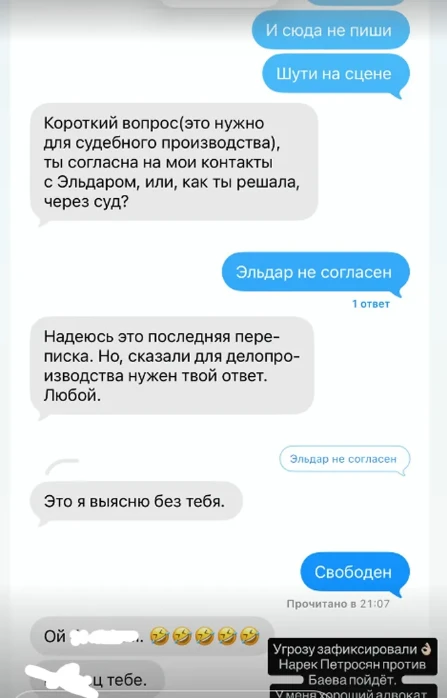 «Буду забирать Эльдара к себе. По решению суда, конечно», — опубликовала женщина якобы переписку с артистом.